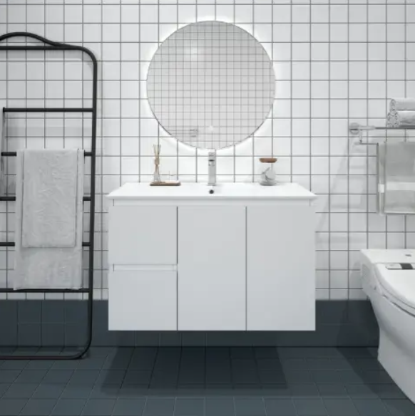 BI-90WL-GW + TOP90: 900mm cabinet with ceramic basin TOP (Dimensions: 910(L) x 470(W) x 180(H) mm)