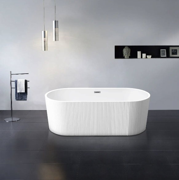Rose 1700mm Fluted V-Groove Freestanding Matt White Bathtub